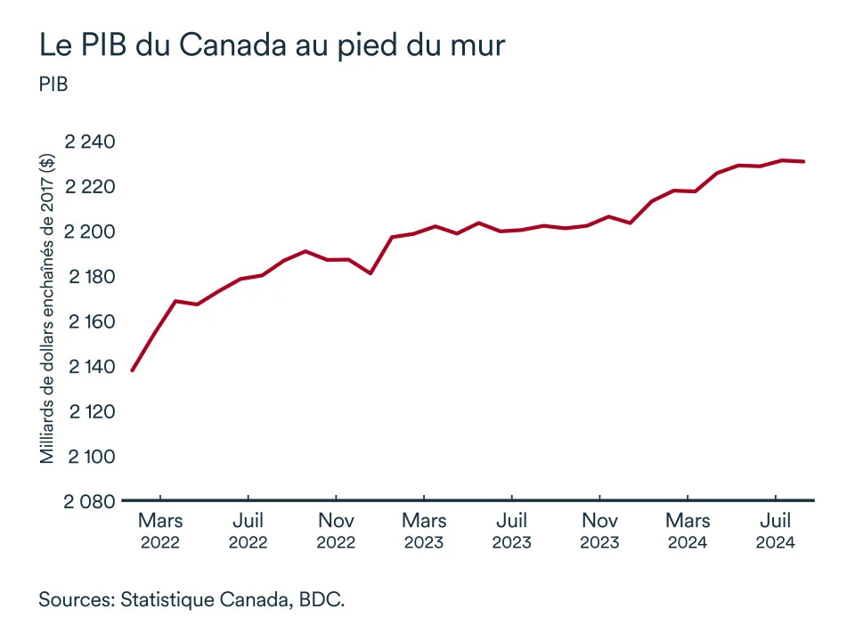 Au cours des huit premiers mois de l’année, l’économie canadienne a progressé de 1,1 % par rapport à la même période en 2023. Considérant que des vents de face soufflent encore sur l’économie canadienne, la croissance devrait ralentir encore davantage au dernier trimestre de l’année, voire se replier pendant un mois ou deux, ce qui porterait la croissance annuelle à 1,0 % pour 2024.