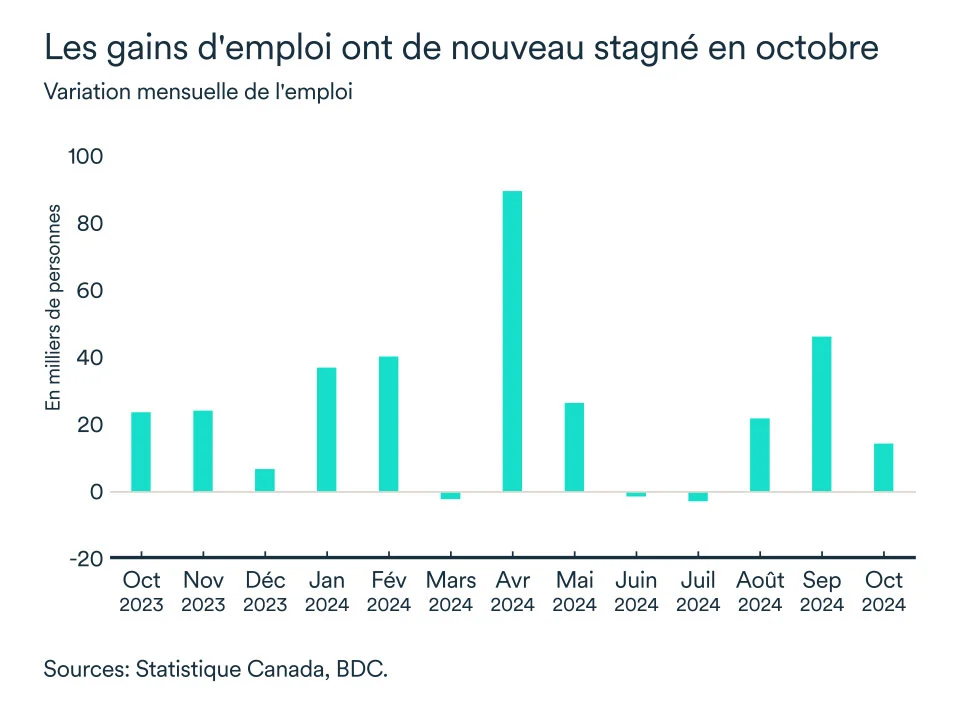 Malgré des gains minimes au chapitre de l’emploi, le taux de chômage n’a pas bougé. Il s’est maintenu à 4,1 % en octobre soutenu par la diminution de la population active entraîné par le ralentissement de l’immigration.