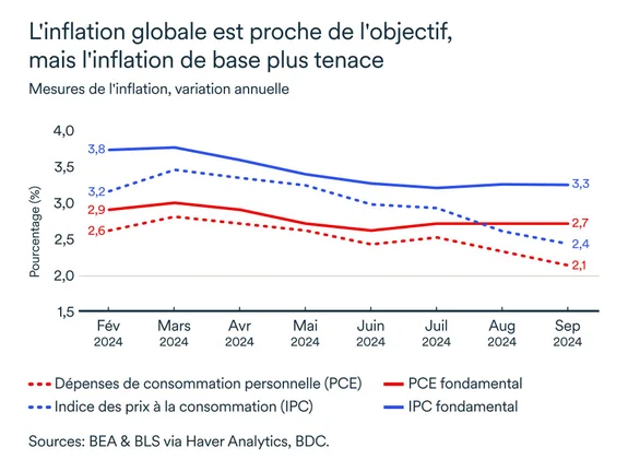 L’indice des prix à la consommation (IPC) a poursuivi sa descente en septembre, à 2,4 % de croissance en glissement annuel, grâce à la déflation des prix de l’énergie. L’inflation fondamentale de l’IPC (qui exclut l’énergie et les denrées alimentaires) était à 3,3 %.