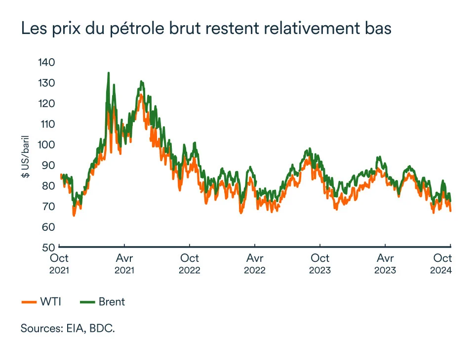 Plus généralement, les prix du pétrole sont en baisse et de nombreux experts prévoient que la valeur du pétrole pourrait encore diminuer au cours des prochains mois. Cela s'explique par le fait que la production de pétrole dans le monde augmente plus rapidement que la consommation mondiale. Les conditions économiques mondiales sont restées faibles en 2024, malgré quelques développements positifs concernant l’inflation et les taux d’intérêt. Les politiques monétaires restrictives des principales banques centrales, de même que le climat géopolitique tendu et incertain et les difficultés que connaît l’économie chinoise, continueront à entraver l'activité économique aux quatre coins du globe. Déjà, pour 2024, la demande mondiale de pétrole a augmenté moins vite que ne le prévoyaient les experts.