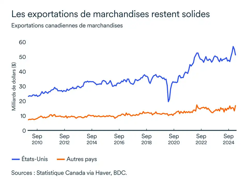 Toutefois, les tensions commerciales et la forte dépendance de la province à l'égard des États-Unis pèsent sur la confiance des consommateurs et des entreprises de la province. La situation actuelle limiterait les dépenses et les investissements des entreprises dans les mois à venir.