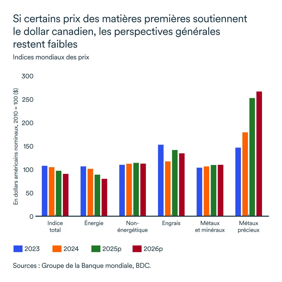Sans amélioration du commerce mondial en 2026, les matières premières maintiendront une pression baissière sur le dollar canadien.