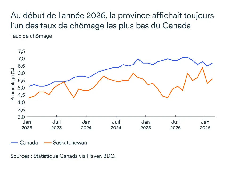 L'économie de la Saskatchewan devrait connaître une croissance d'environ 1,7 % en 2026, ce qui lui permettra de conserver sa place parmi les provinces les plus performantes du Canada. Alors que l'accord entre le Canada et la Chine visant à réduire les droits de douane sur le canola et d'autres produits agricoles entre en vigueur ce mois-ci, nous nous attendons à une accélération de la dynamique en Saskatchewan.