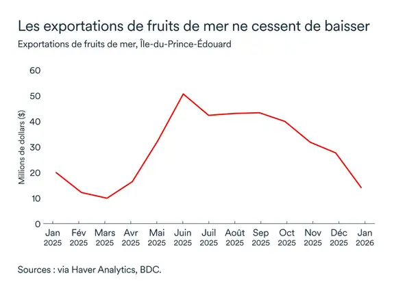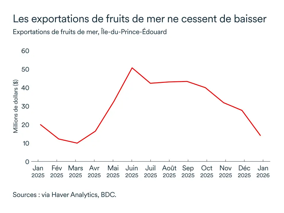 Les droits de douane imposés par la Chine et les États-Unis ont maintenu la pression sur les exportations de la province. Les baisses les plus marquées concernent les exportations de fruits de mer. L'île reste toutefois en bonne voie pour enregistrer une croissance de 1,2 % en 2026.