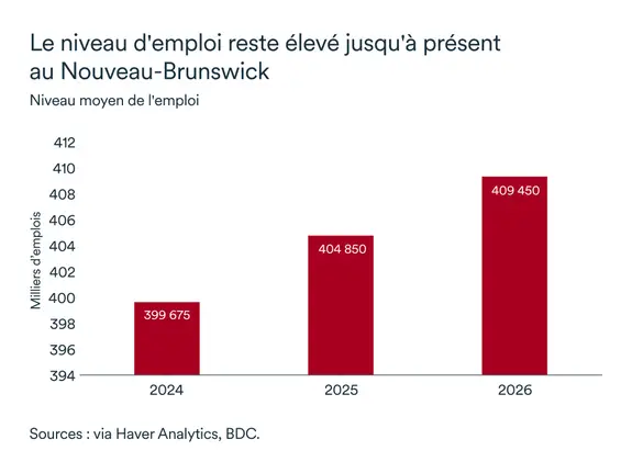 Les ventes au détail ont augmenté de 4,8 % en 2025. La stabilité du marché du travail soutiendra les dépenses de consommation cette année. L'économie de la province devrait croître de 0,9 % en 2026, à la traîne par rapport à ses homologues de la région de l'Atlantique.