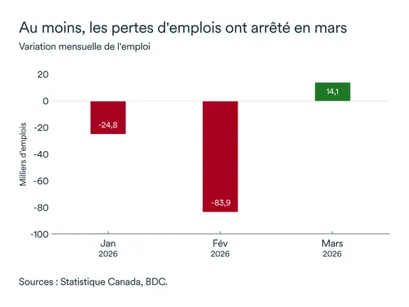 Le mois de mars a toutefois marqué un tournant : 14 100 emplois ont été recréés, mettant fin à l’hémorragie. C’est encourageant, même si cela n’efface pas les pertes. Le taux de chômage s'établit à 6,7 %.