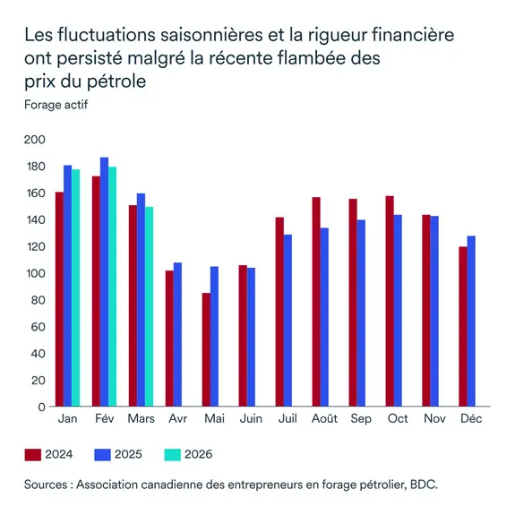 Les activités de forage sont restées inférieures à celle de l'année dernière, ce qui témoigne d'un ajustement saisonnier quelque peu plus difficile. Alors que les tensions au Moyen-Orient s'intensifient, les producteurs de l'Alberta sont bien placés pour augmenter leur production tout en maintenant leur discipline financière des dernières années, compte tenu des prix récents.