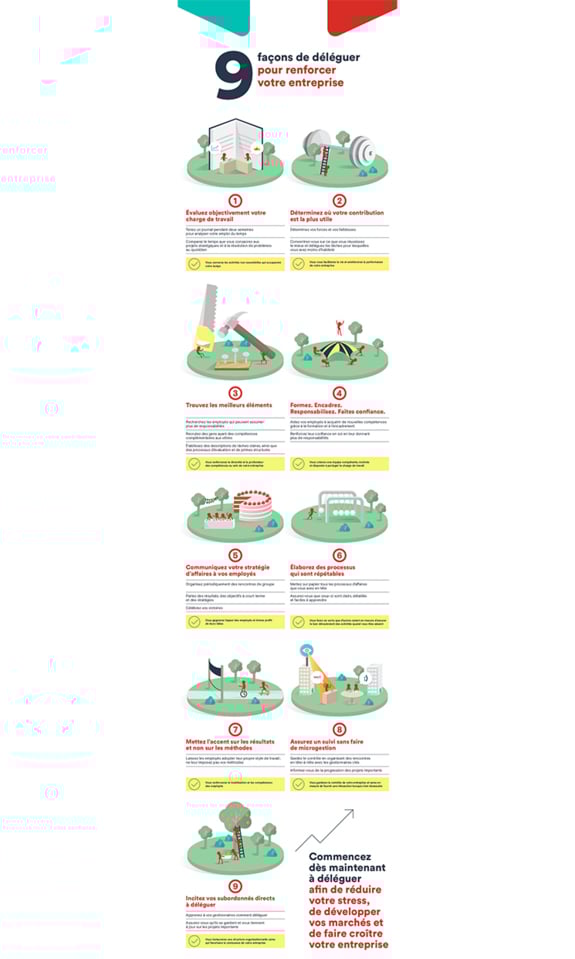 Pour beaucoup de propriétaires et de gestionnaires, le fait de ne pas déléguer suffisamment de tâches est un obstacle qui provoque du stress tant sur le plan personnel que professionnel en plus d’entraver la croissance de leur entreprise.