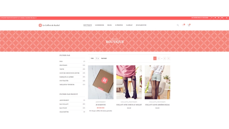 Les trois fondatrices du Coffret de Rachel, une entreprise de Montréal qui vend des bas et des leggings de fantaisie d’excellente qualité, ont utilisé une plateforme WordPress pour lancer leur boutique en ligne en 2014 et elles lanceront sous peu un nouveau site sur Shopify.