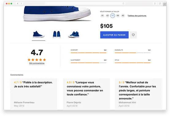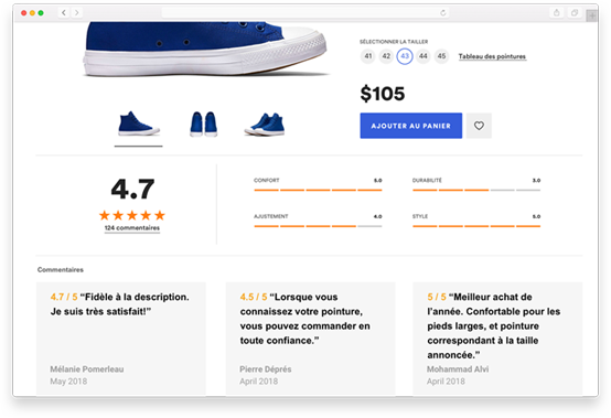 La preuve sociale est l’idée selon laquelle les gens suivent l’exemple des autres. L’adoption de vos produits par des clientes et clients, des spécialistes, des célébrités ou des organisations procure aux visiteuses et visiteurs un confort psychologique qui leur donne le sentiment d’avoir fait un bon choix en achetant chez vous.
