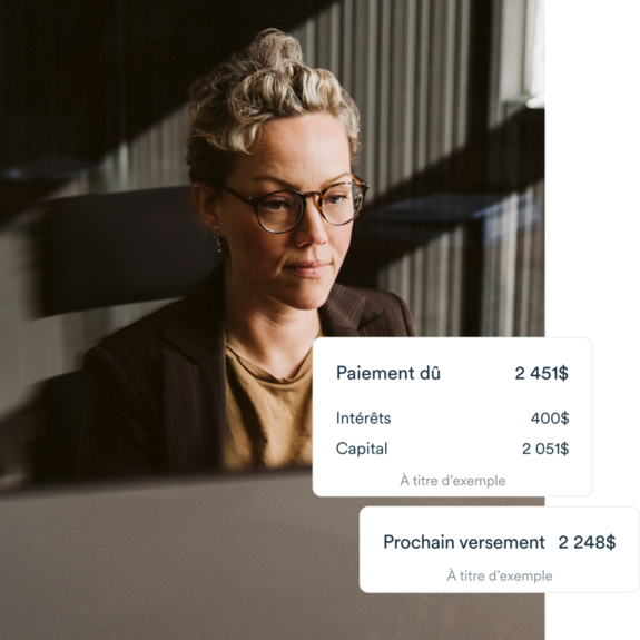 Ce calcul de prêt est une estimation. Les versements mensuels sont fondés sur le taux moyen offert à la clientèle admissible. Votre taux d’intérêt dépendra de divers facteurs, y compris, mais sans s'y limiter, au montant du prêt, le nombre d’années d’activité de l’entreprise et votre cote de crédit. Calcul en date du 14 avril 2025.